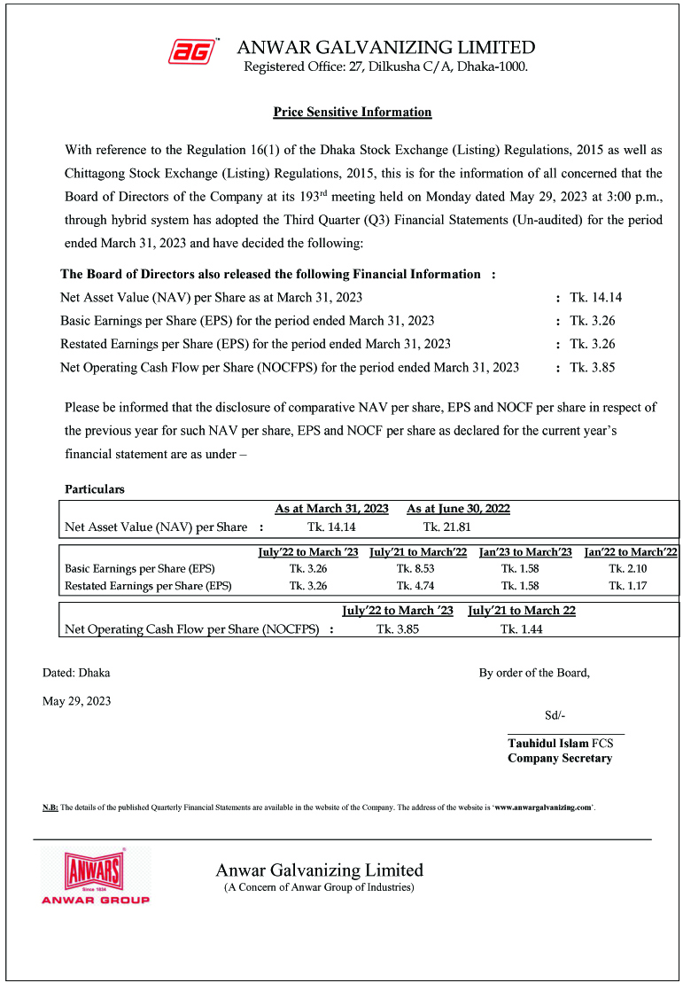 Price Sensitive Information