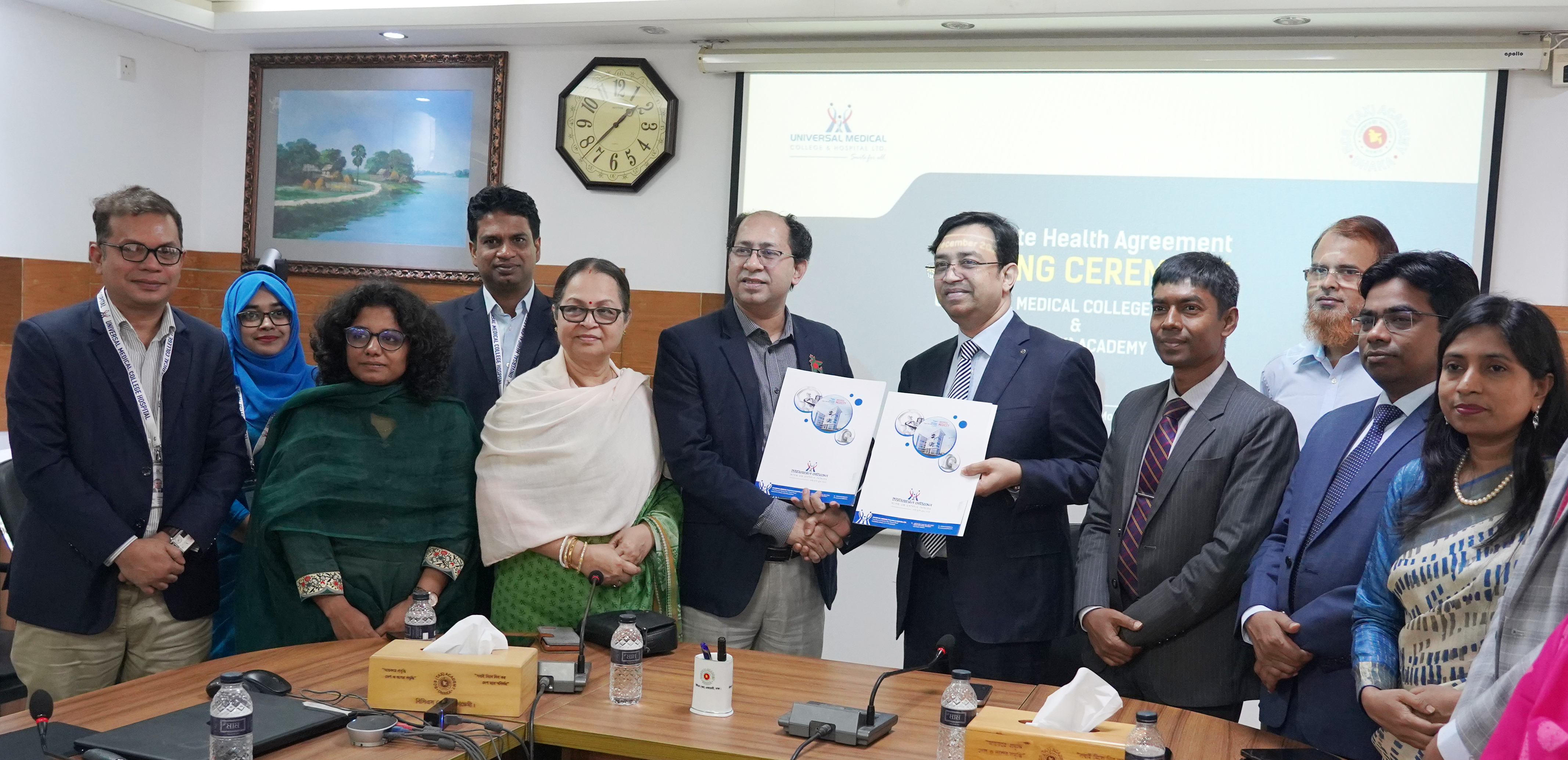 ইউনিভার্সেল মেডিকেল কলেজ হাসপাতাল ও বিসিএস (কর) একাডেমির মধ্যে চুক্তি সই